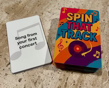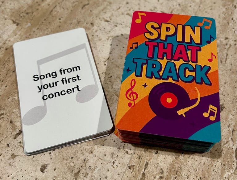Spin That Track is a unique card game that brings friends together through music, creating amazing playlists, good times and great conversation while tapping into players' personal musical memories.